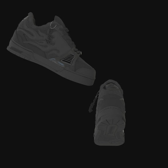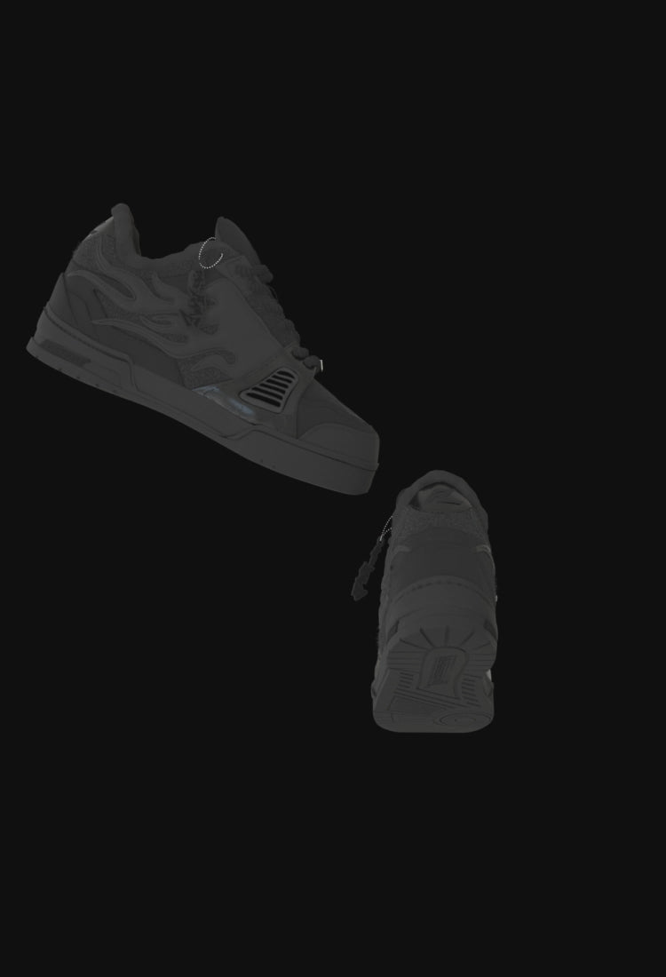 Introducing the SK8-FLAME “Phantoms”, the ultimate all-black streetwear sneaker designed for everyday performance and standout style. This blackout colourway blends textured suede, matte synthetic overlays, and a bold 3D flame design, creating a sleek and powerful look that fits any outfit.